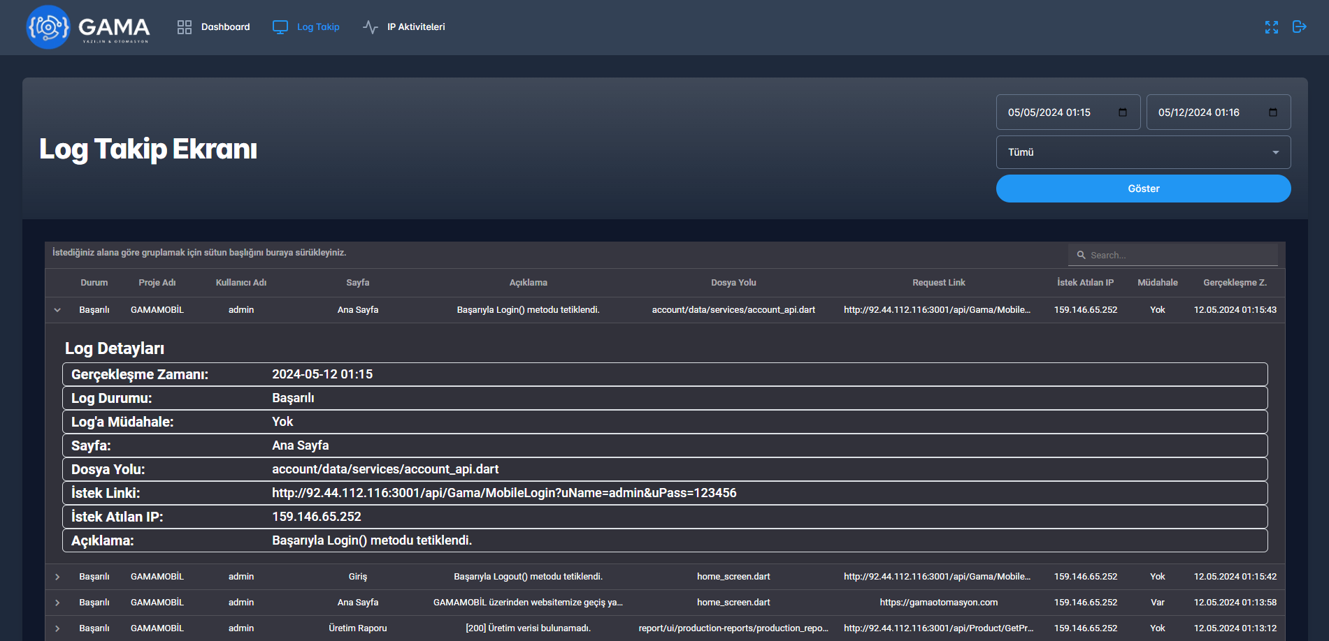 • GAMAMOBİL (application for factory management and reports)